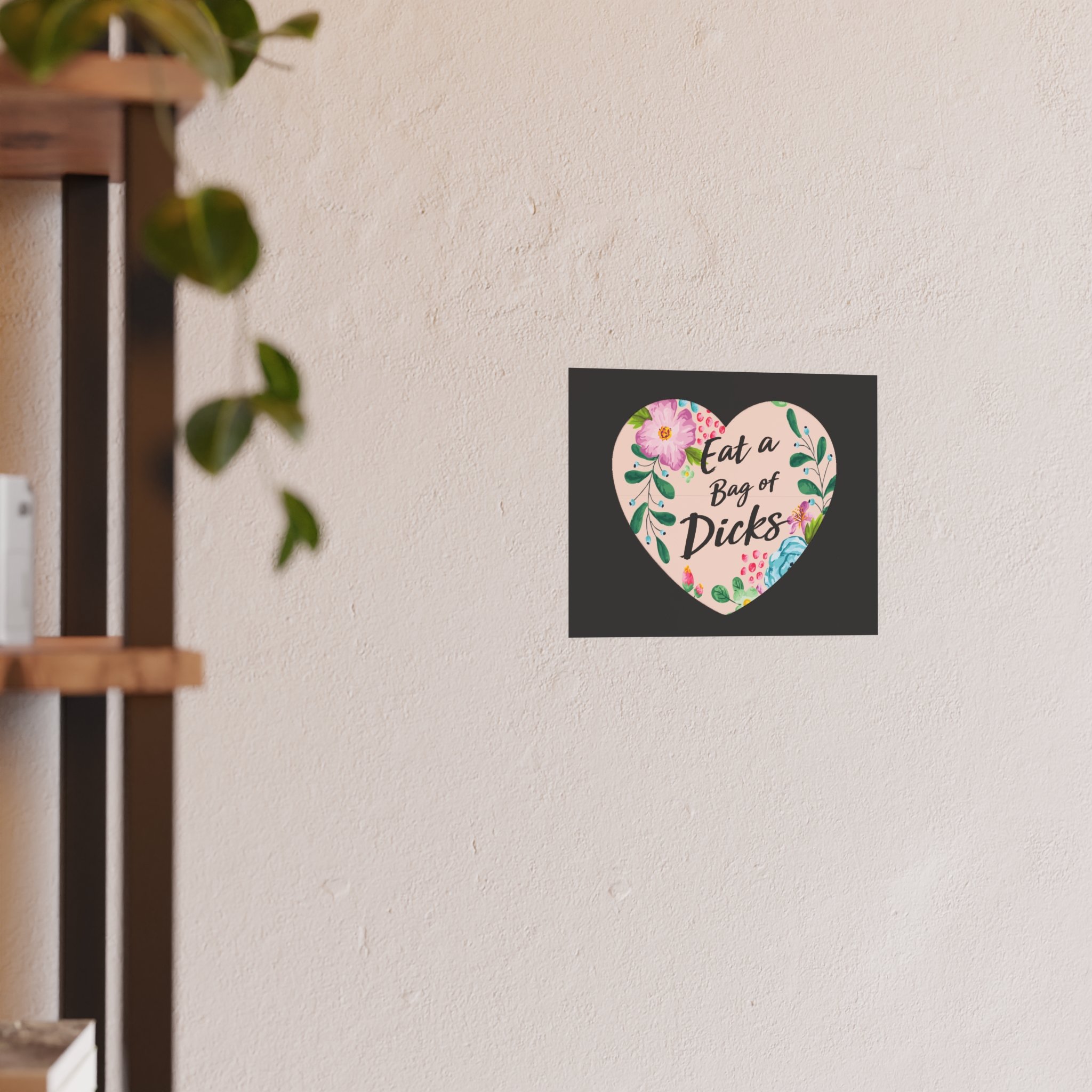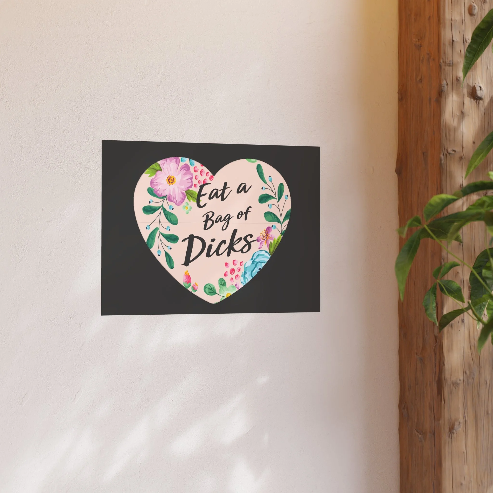 Satin Poster — Floral Heart "Eat a Bag of Dicks" | Funny Sarcastic Wall Art